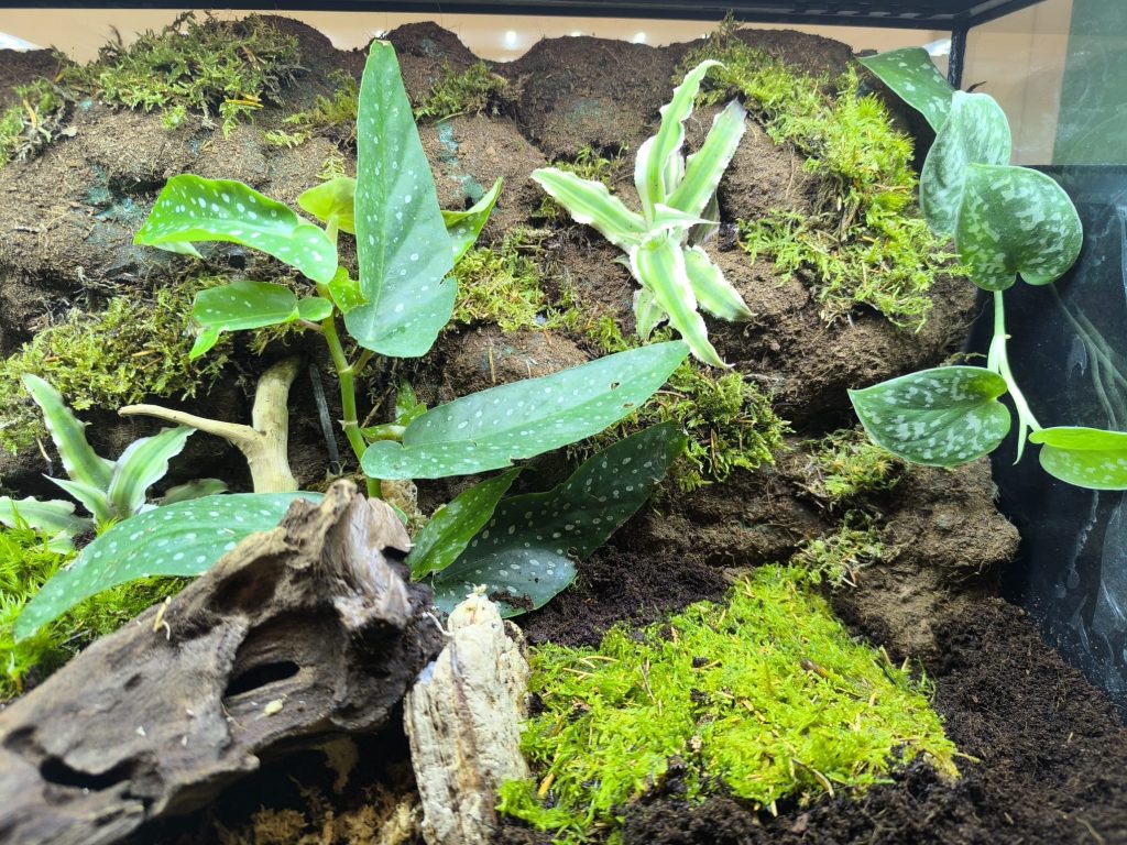 Umidità e Temperatura: Mantieni un’umidità relativa tra il 70% e l’80%, utilizzando un nebulizzatore o un sistema di umidificazione. La temperatura ideale è compresa tra 24°C e 30°C, mantenibile con un tappetino riscaldante o una lampada a infrarossi.
